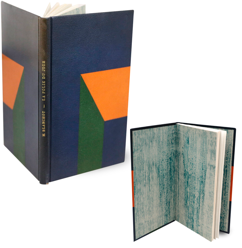 | Maurice Blanchot La Folie du Jour Editions Fata Morgana 1973 Exemplaire sur vergé ivoire, frontispice de Bram Van Velde Belle reliure mosaïquée parfaitement exécutée. 150 euros |