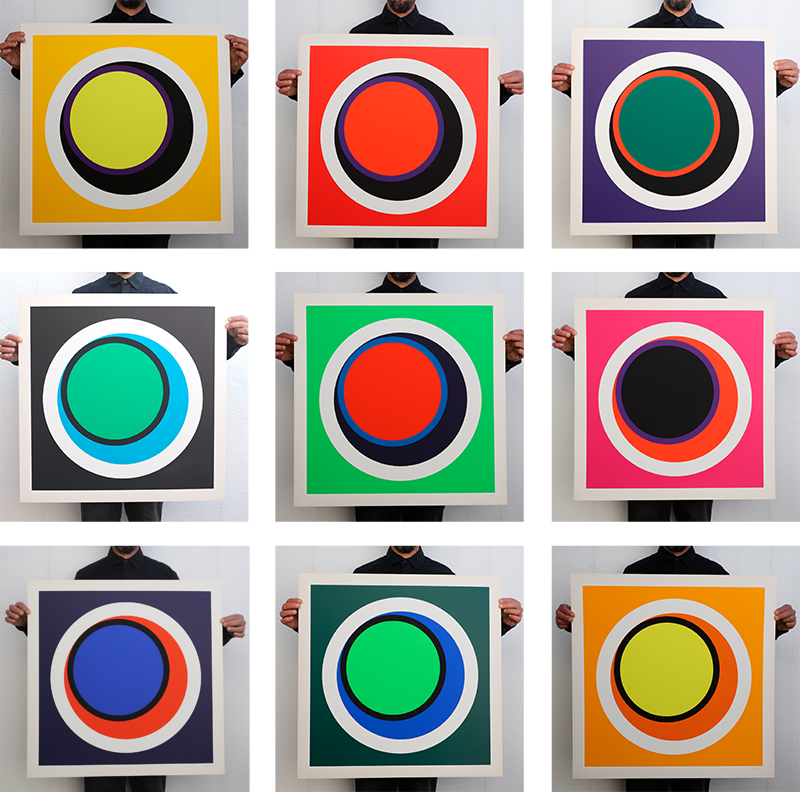 | Geneviève Claisse Série "Cercles" Ensemble de 9 sérigraphies 68x68cm sur papier cartonné Première édition, galerie Denise René 1968 Limitée à 100 exemplaires numérotés et signés Prix : nous contacter |